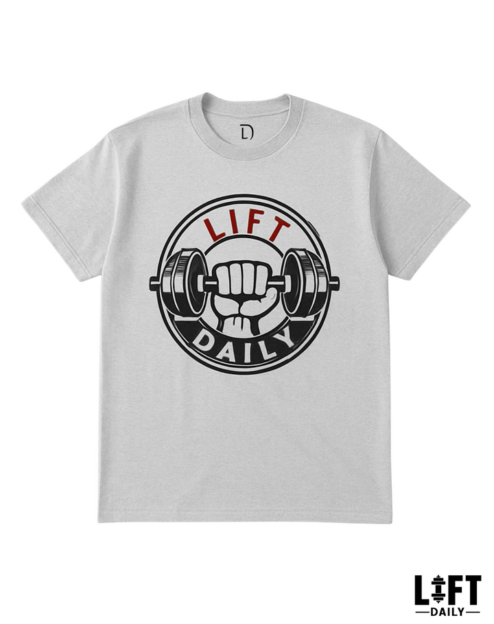 The bold front graphic features a powerful fist gripping a barbell, framed with the Lift Daily name a symbol of hard work and dedication. Designed with an athletic unisex fit, it looks great on both men and women while keeping you cool and comfortable.